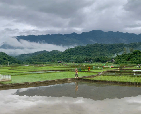 🌄 Quand visiter Mai Châu ? La vallée de Mai Châu est belle toute l’année, mais la période la plus agréable s’étend de septembre à mai, lorsque le climat est doux et les paysages resplendissants. En juin-juillet, les champs de riz sont d’un vert éclatant ; en octobre-novembre, c’est la saison des récoltes, un moment magique pour les photographes.