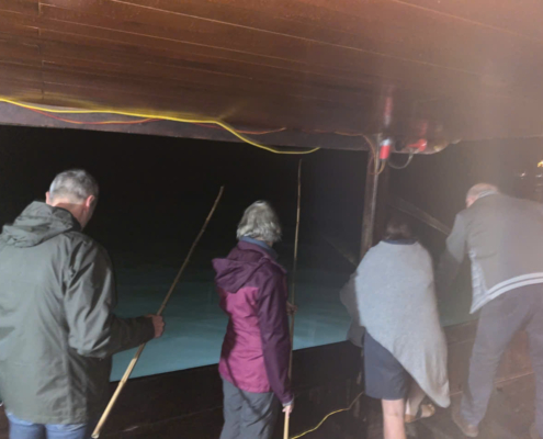 À bord d’un bateau de nuit traditionnel, le confort moderne se mêle à l’atmosphère authentique d’un jonque vietnamienne. Après un délicieux dîner à base de fruits de mer frais, l’équipage éteint les lumières principales et allume des lampes spéciales qui attirent les calamars vers la surface. Les reflets verdâtres dansent sur les vagues, et l’aventure commence. Sous les conseils des pêcheurs locaux, vous tenez la canne, scrutez la surface scintillante, et d’un geste rapide… un petit jet d’eau jaillit : vous venez d’attraper votre premier calamar ! Les rires, les exclamations et la magie du moment transforment cette simple activité en un souvenir inoubliable. Mais le plaisir ne s’arrête pas là .
