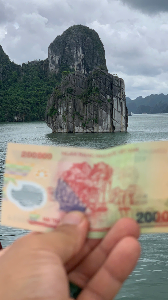 Mais ce qui est encore plus incroyable, c’est que cette île, qui semble presque irréelle, est parfaitement représentée sur cette coupure de monnaie ! L’île de Đỉnh Hương, avec sa silhouette unique, semble presque prête à sortir du billet, comme si elle nous invitait à la découvrir de plus près. Ce détail si soigneusement choisi ne fait que renforcer la beauté et l’importance de cet endroit magique, tout en soulignant l’engagement du Vietnam à préserver ses trésors naturels.
